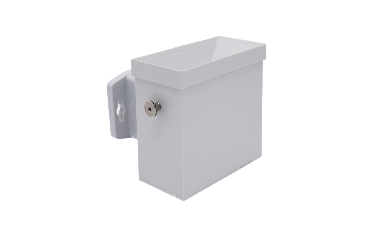 Sääasema, joka laskee mittakupista sateen määrän ja sensorista lämpötilan, ilmankosteuden ja ilmanpaineen.